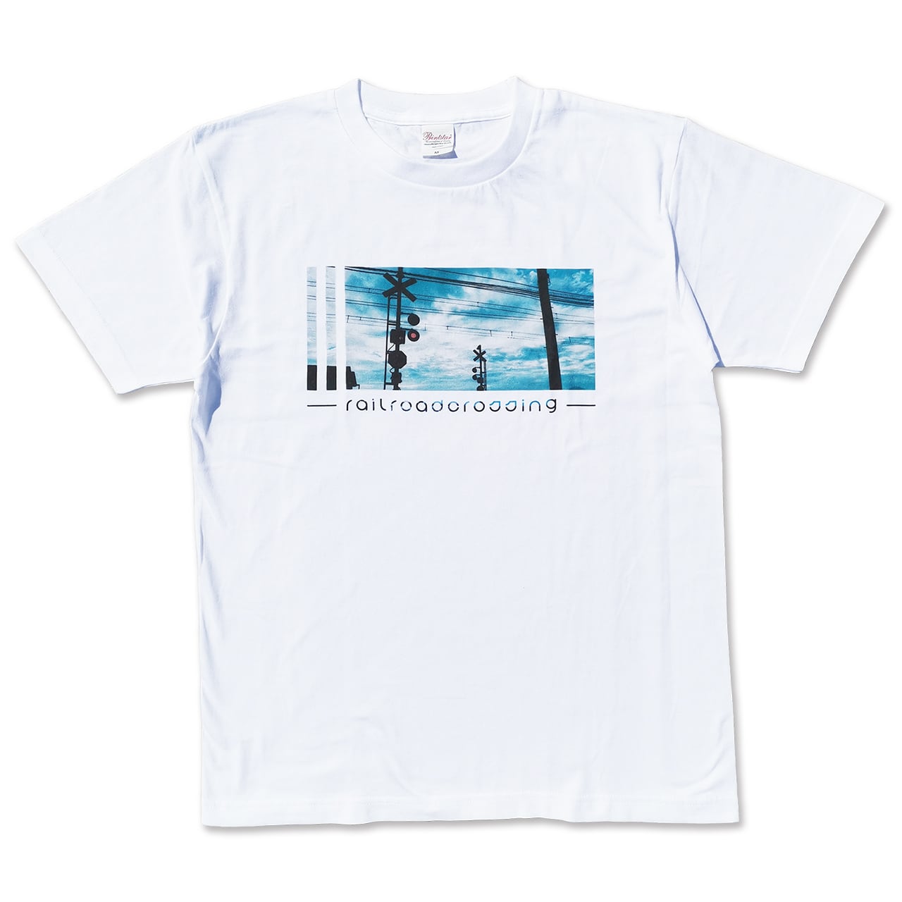 "railroad crossing" (踏切) の文字をあしらったデザインです。